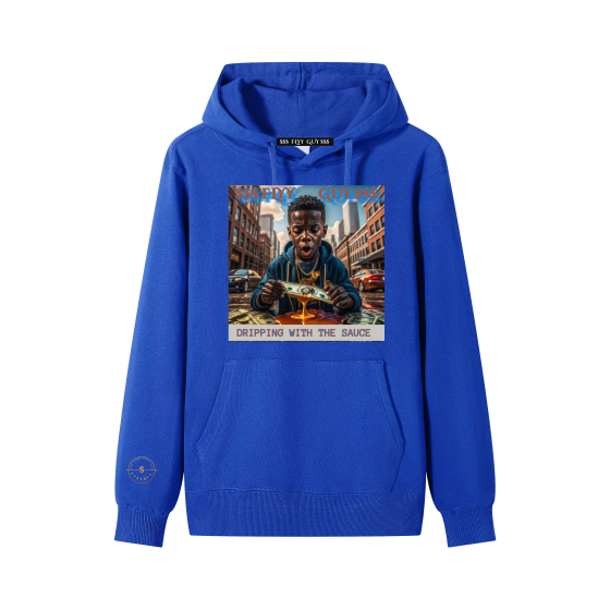 Custom graphic design hoodie with logo embroidery on sleeve.